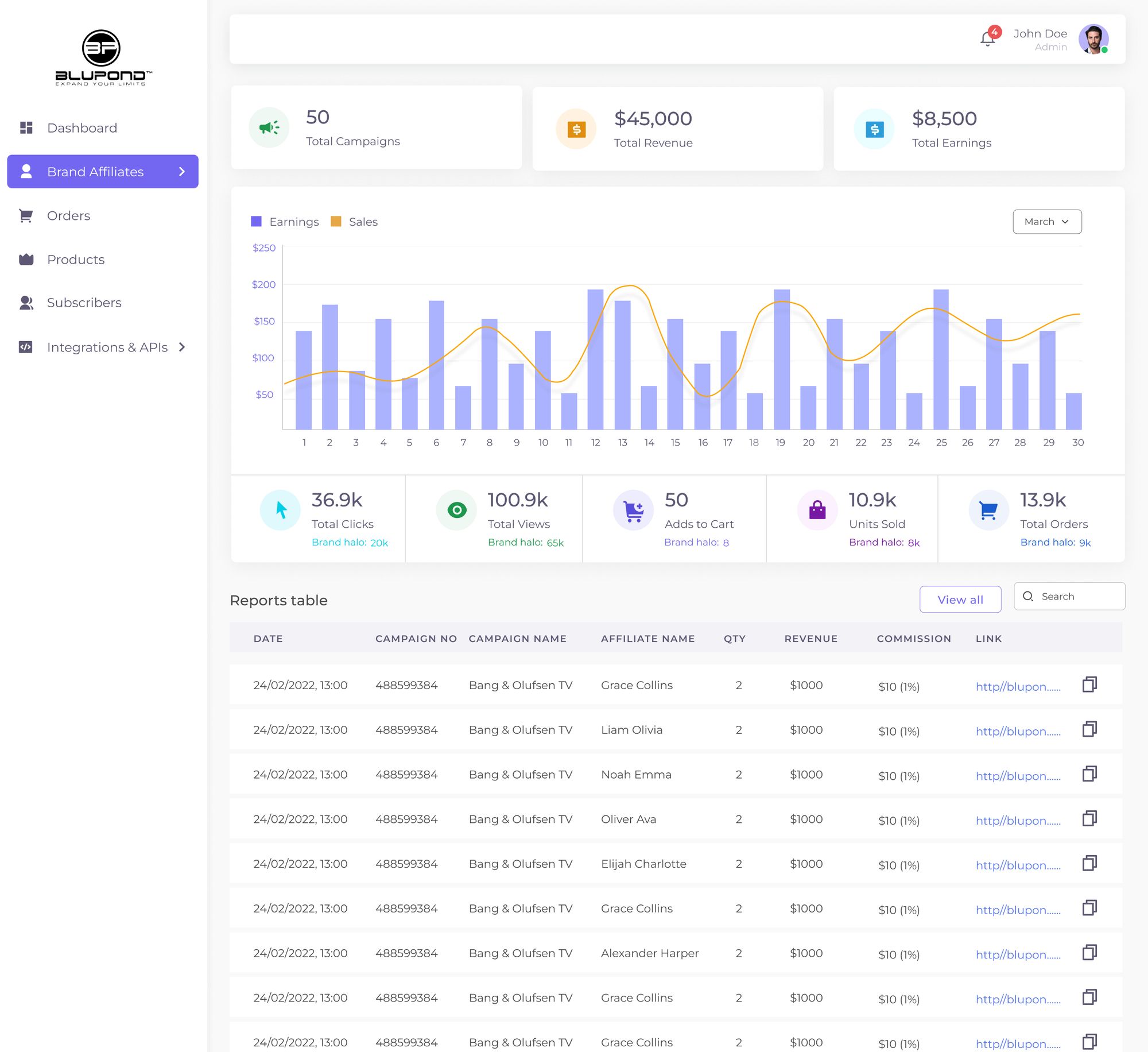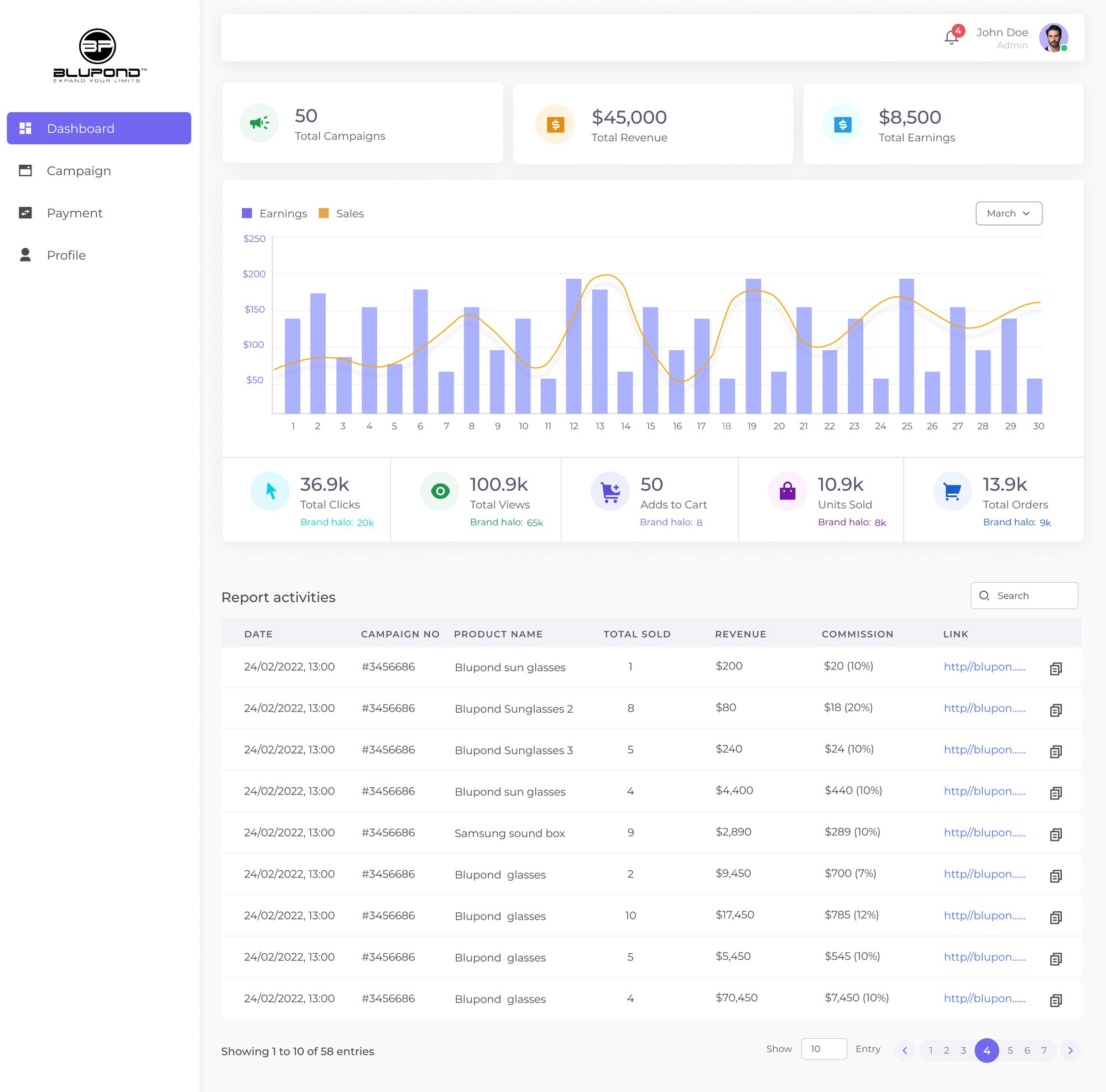 The primary objective of this project was to enhance the robustness of the sales system and introduce additional features to autonomously generate data from the main sales source, Amazon. Stakeholders identified a key challenge: providing superior commissions and incentives to affiliates compared to competitors like Amazon and other e-commerce platforms. While Blupond possessed an existing platform acquired from an online company, it fell short of meeting their specific needs. The desire was for a more tailored solution with enhanced features, coupled with an improved user interface and overall user experience. Blupond aimed to stand out with a unique and compelling solution that not only delivers but multiplies value, ensuring seamless experiences for users.