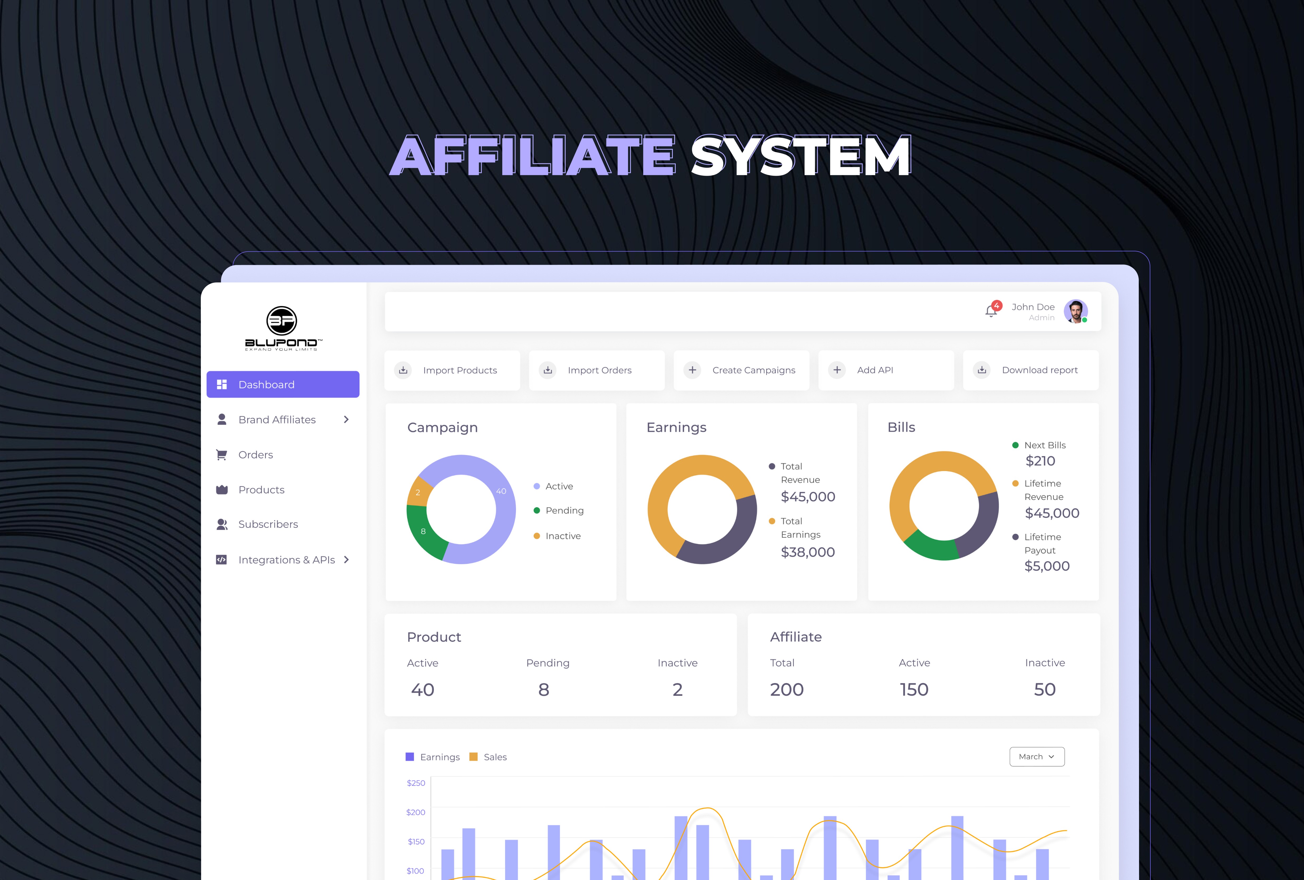 Thoroughly examine all aspects of the affiliate system, covering campaigns, earnings, invoices, products, affiliates, and orders.