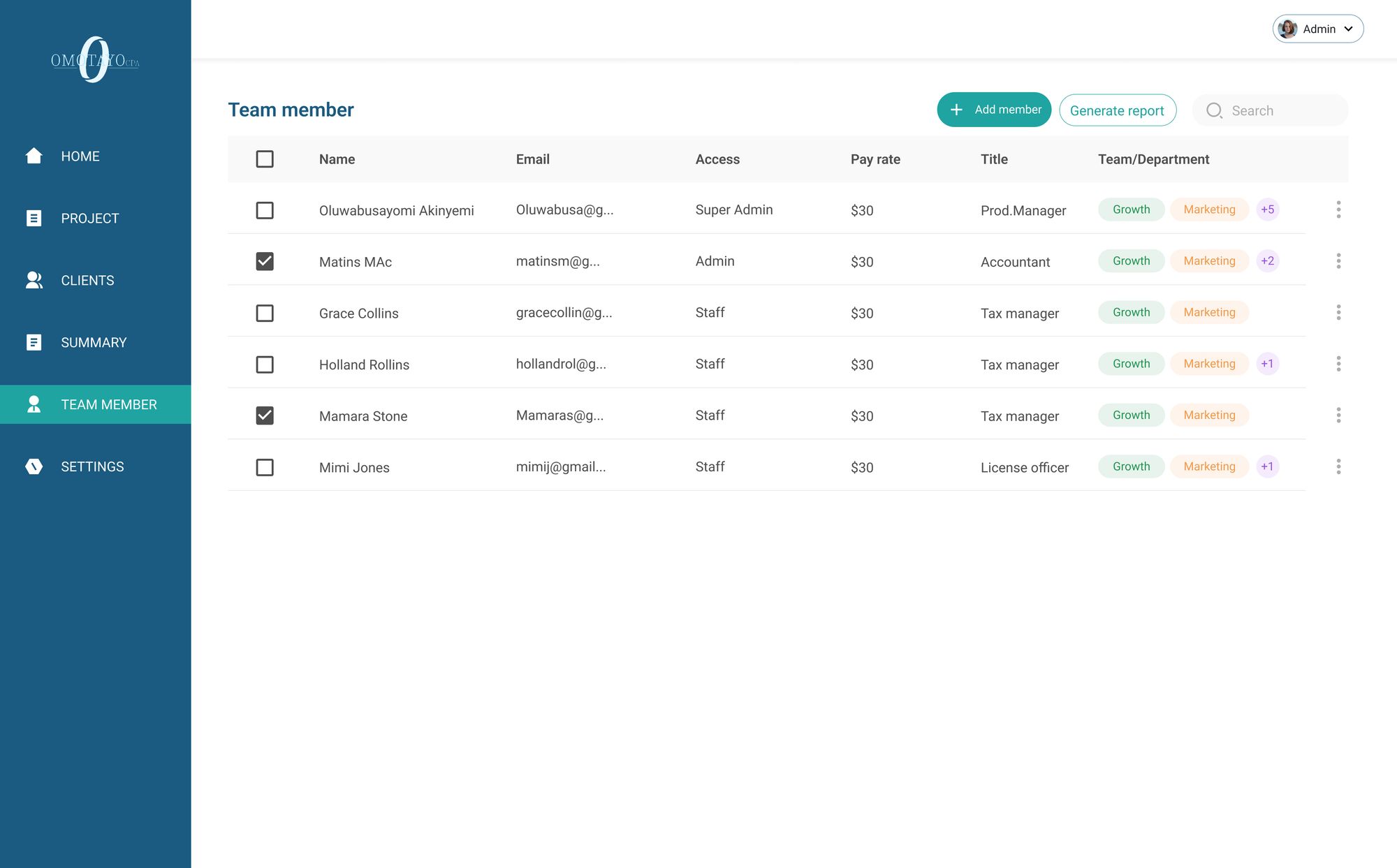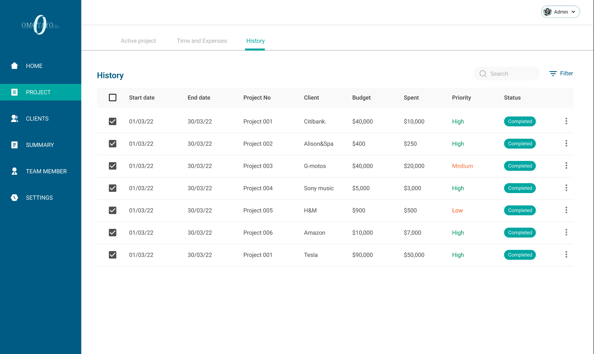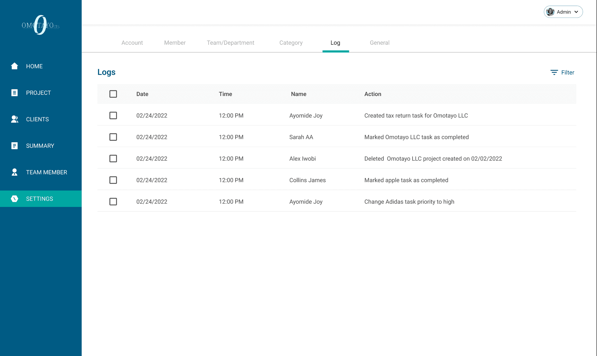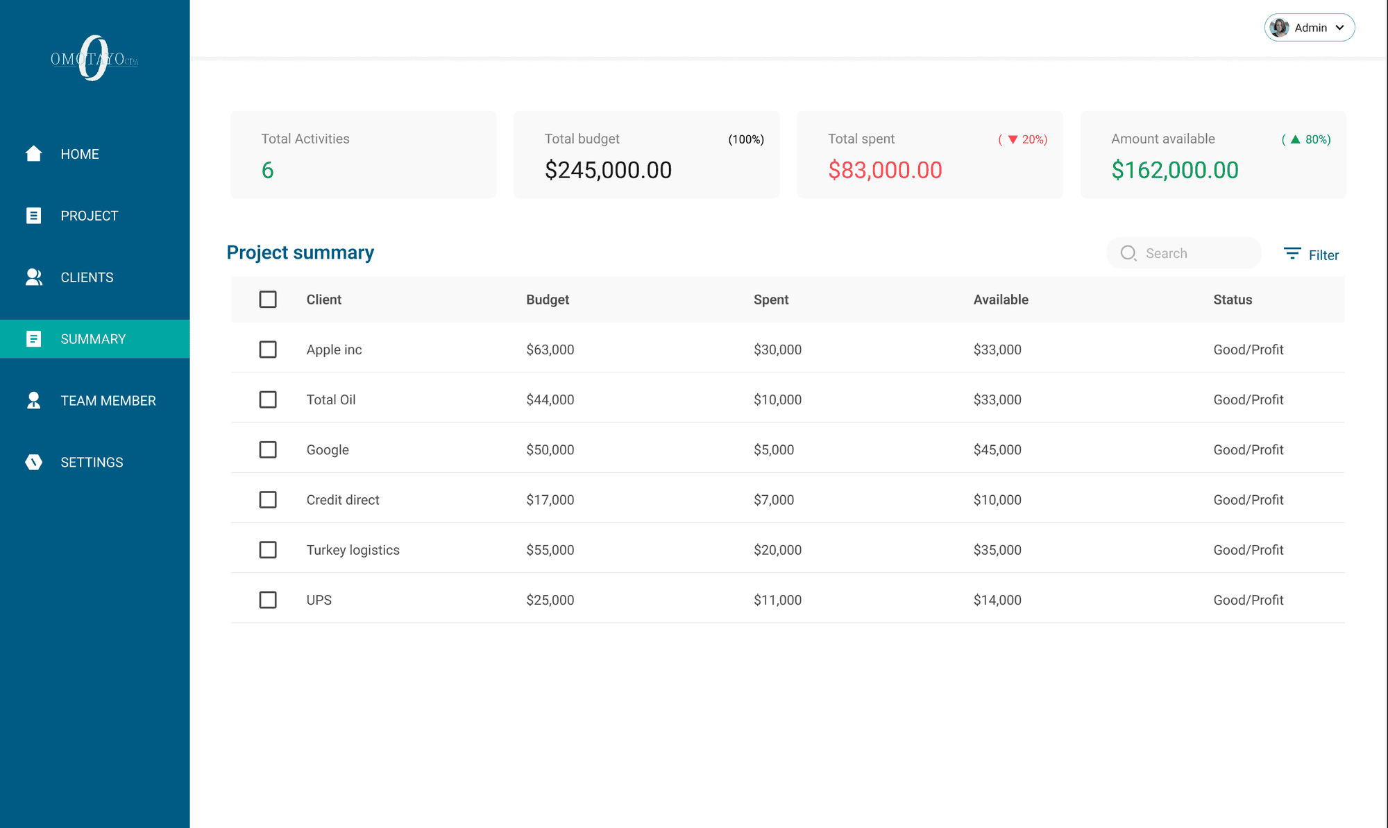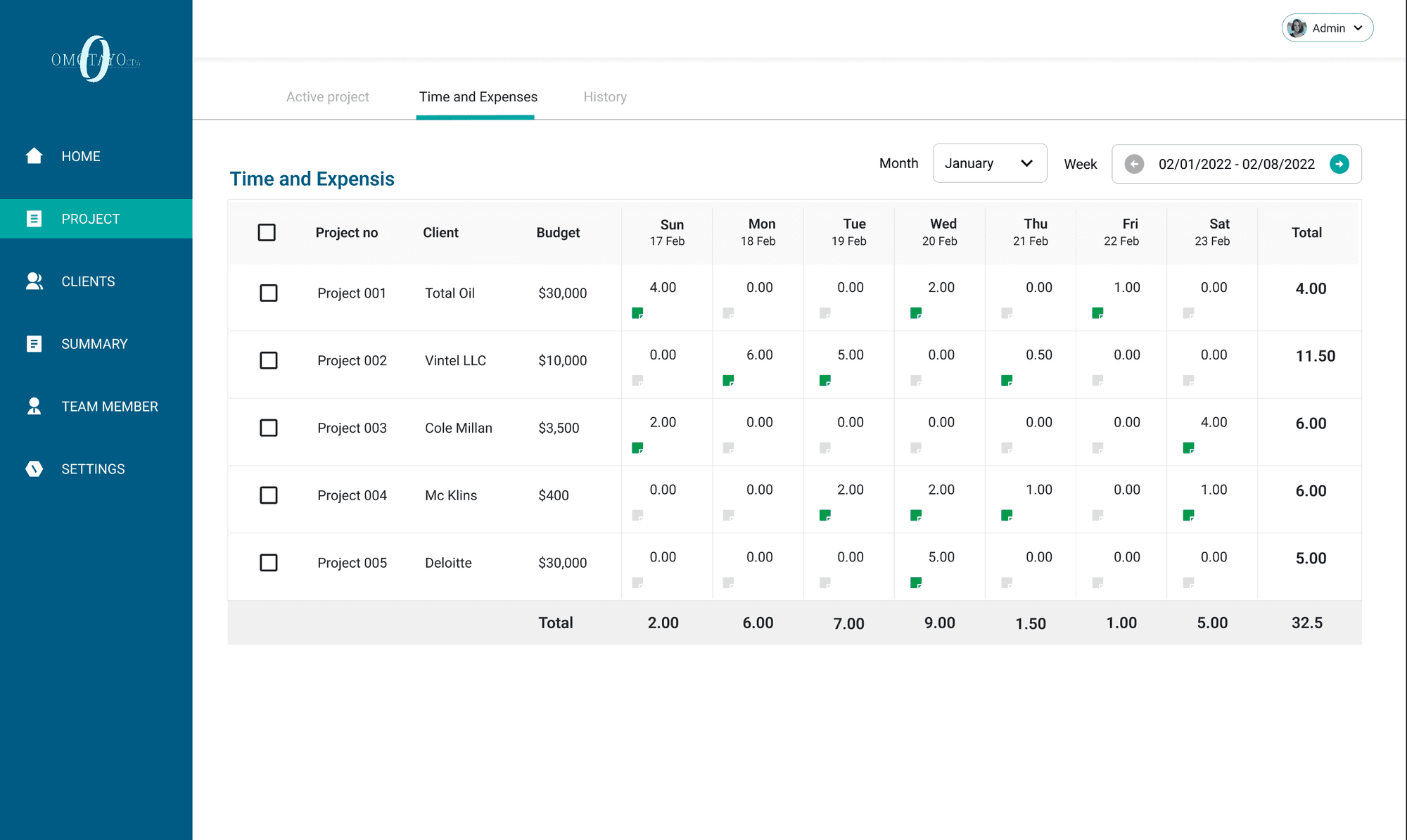 Omotayo CPA is an internal software meticulously crafted to oversee and manage all facets of our company's operations. Tailored for precision, this software is dedicated to evaluating project completion rates, assessing staff performance on a per-project basis, and monitoring project tasks. It provides insightful analysis into budget allocation and spending patterns.
