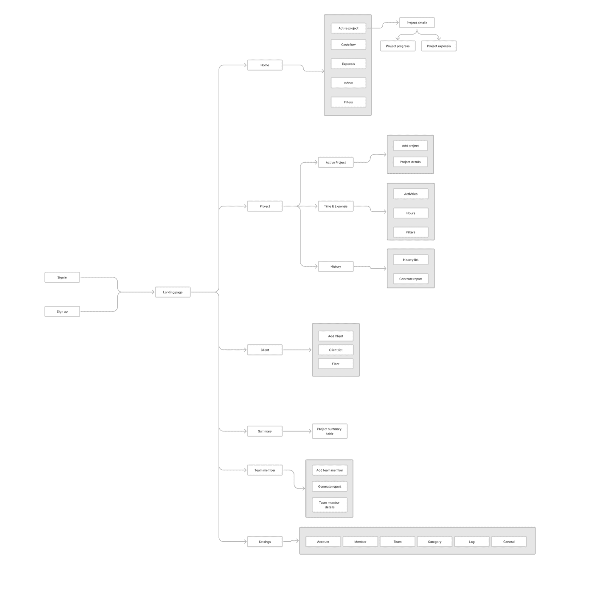 The main screens provide an encompassing view of the company's operations, showcasing incoming funds, project-specific expenses, cash flow, and a snapshot of current projects for convenient access and visualization. From the homepage, users have the option to initiate a new project, while the data analytics can be refined to offer detailed insights over varying periods, spanning months and years.