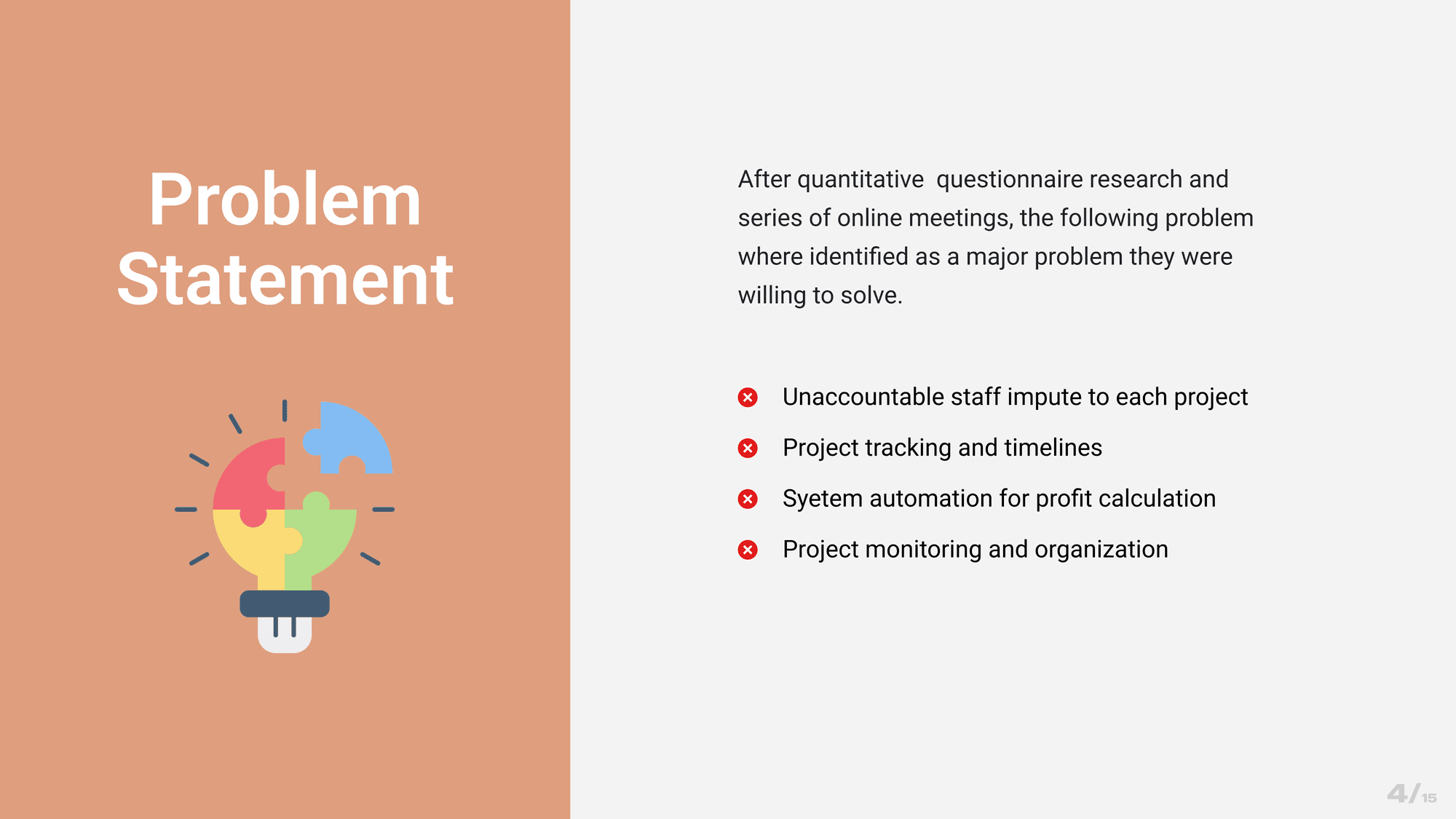 During a Zoom call interview, I engaged with four accountants and two executive officers within Omotayo CPA, further uncovering interesting pain points related to the desired functionality of the software and the potential advantages it could bring to the company. Key pain points include the challenges of assessing profitability, establishing timelines, factoring in expenditures, and effectively measuring staff performance within tasks.